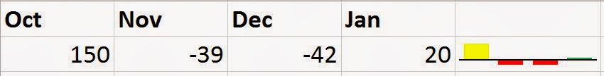 | Sparkline grafikon, ki prikazuje pozitivne/negativne vrednosti |
